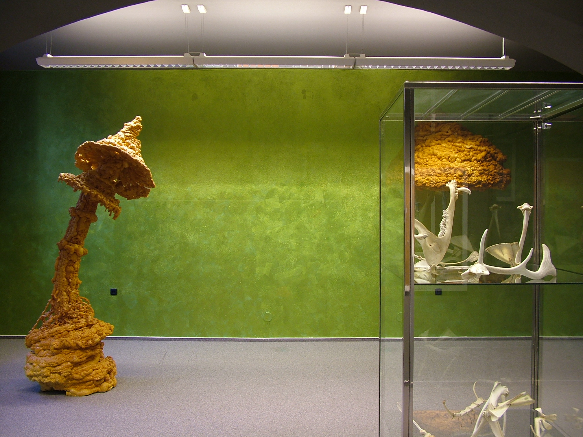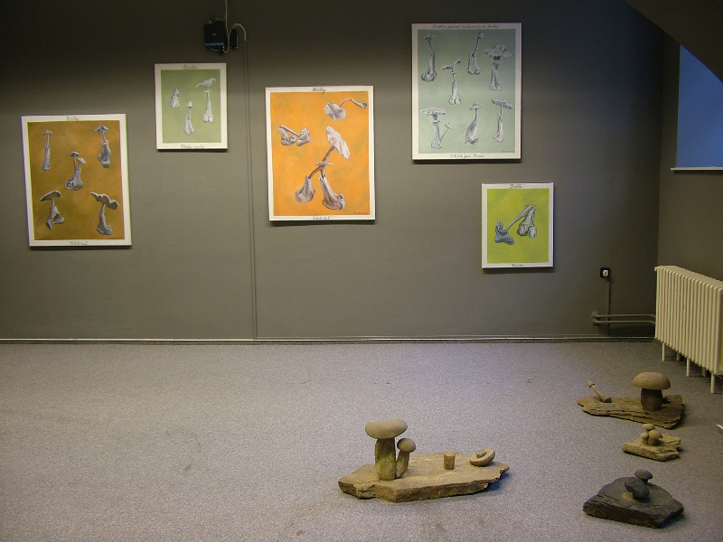 POPIS: Samostatná výsta „Příměstský chodec“ představující autorovy práce z posledních let, kdy se zabývá průzkumem nejrůznějších materiálů v návaznosti na přírodovědné sbírky a mykologické modely.